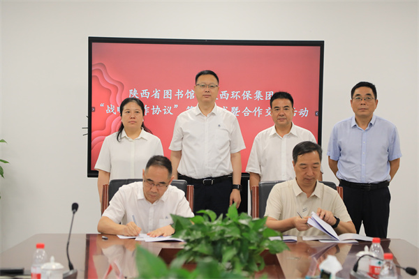 8月14日,陜西環保集團與陜西省圖書館在省圖書館高新館區簽訂戰略合作協議。陜西環保集團黨委書記、董事長郝軍亮,陜西省圖書館黨委書記、館長周云岳出席簽約儀式。陜西環保集團黨委副書記、董事、工會主席趙建文,陜西省圖書館黨委委員、工會主席胡竹林分別代表雙方簽署協議。
