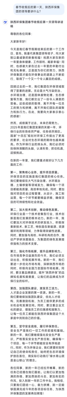 DeepSeek是真懂陜西環保集團啊!