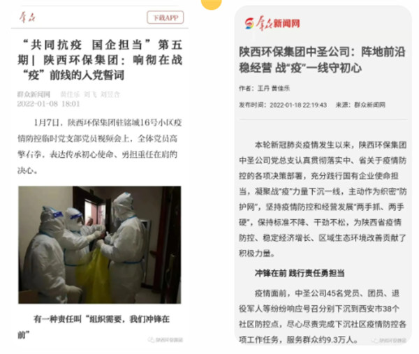 連日來,光明日報-光明日報客戶端、學習強國、陜西日報-群眾新聞網、陜西廣播電視臺-起點新聞、陜西頭條-西部網陜西新聞網、陜西工人報-陜工網、陜西國資、華商報-華商網、今日頭條等平臺集中刊載環保集團戰疫稿件60余篇,多維度講述了陜西環保集團戰“疫”故事。現將部分報道刊載如下,以饗讀者。