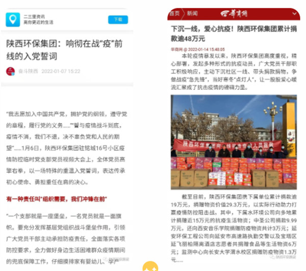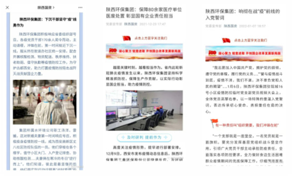 2022年1月1日、11日、12日,學習強國對陜西環保集團沖鋒在一線的志愿者進行報道。