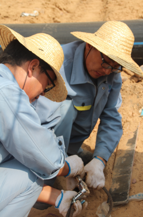▲在烈日炙烤下,對填埋場的管道進行加固。衣服濕了一遍又一遍,但是他們依然沒有停止手頭的工作。