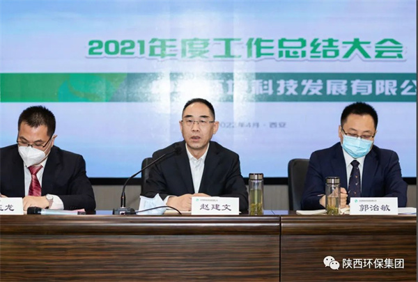 4月15日,中圣公司召開2021年度工作總結大會。根據疫情防控要求,會議采用“主會場現場參會+分會場視頻參會”形式舉行。陜西環保集團董事、副總經理趙建文出席會議。