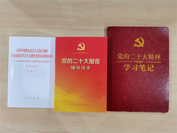 購(gòu)買黨的二十大報(bào)告單行本、解讀材料以及學(xué)習(xí)筆記本,要求全體黨員干部細(xì)讀原文,深悟思想,主動(dòng)當(dāng)好黨的二十大精神的求學(xué)者、宣傳者和踐行者。